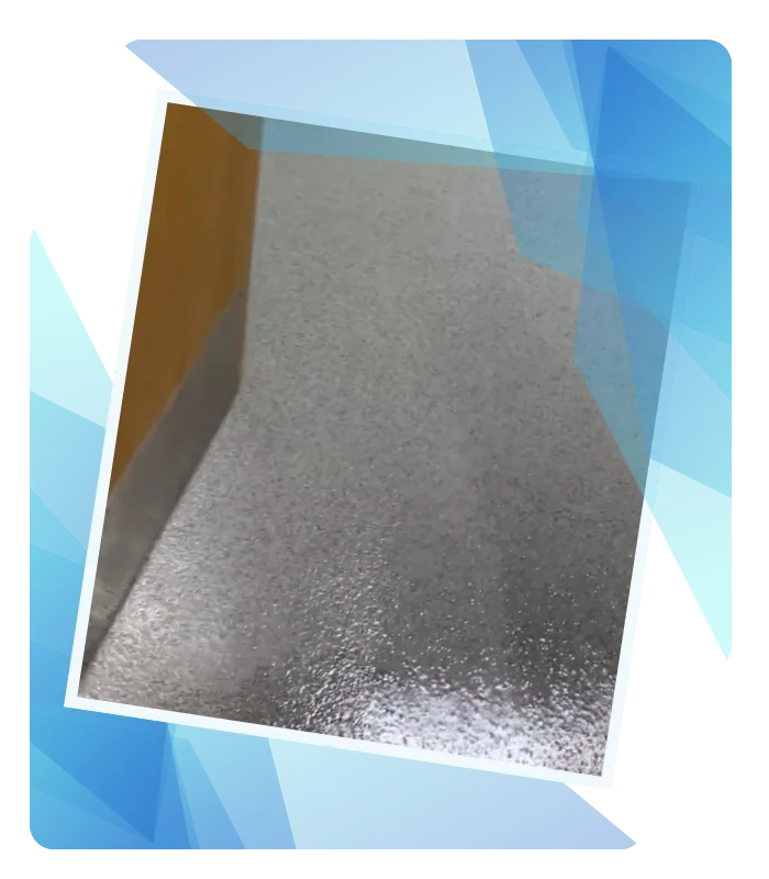 The completed quartz epoxy floor provides a satin finish, enhanced durability, and a seamless, slip-resistant surface that meets OSHA safety standards.