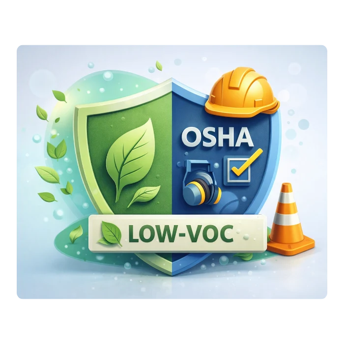 All materials used were low-VOC, supporting cleaner indoor air quality. Installation met OSHA compliance standards.
